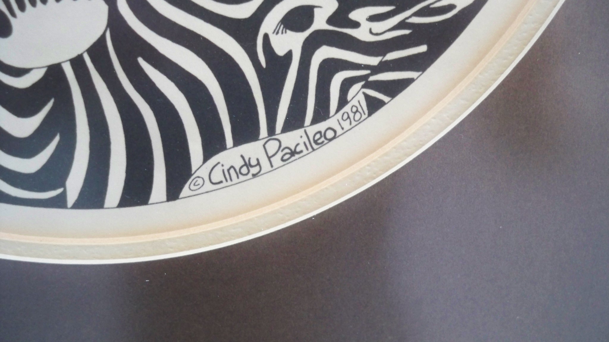 Née dans une famille d'artistes, ayant grandie à Dayton Ohio USA, artiste multidisciplinaire, on la connait surtout pour ses personnages de glaise qui font la joie des enfants, également peintre dessinatrice, céramiste, graveur, l'oeuvre qu,on vous présente est daté 1981, et fût reproduite en petite quantité, ses animaux ou petits hommes sont toujours des êtres sortis des contes des milles et une nuits, ou autres aventures fantastiques, que seule Mme Pacileo peut imaginer.